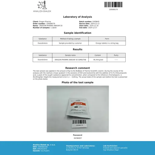Dragon Pharma Anavar comes in the form of oral tablets and contains 50mg of Oxandrolone per tablet. It belongs to a class of drugs known as anabolic steroids. Which are designed to mimic the effects of the male hormone testosterone in the body. It is known for its ability to promote lean muscle mass, increase strength, and reduce body fat.